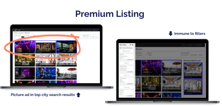 Generate more leads with EventUp Premium listings. Upgrade to Premium or Premium PLUS to secure a spot in the Top 20 venue ranking.