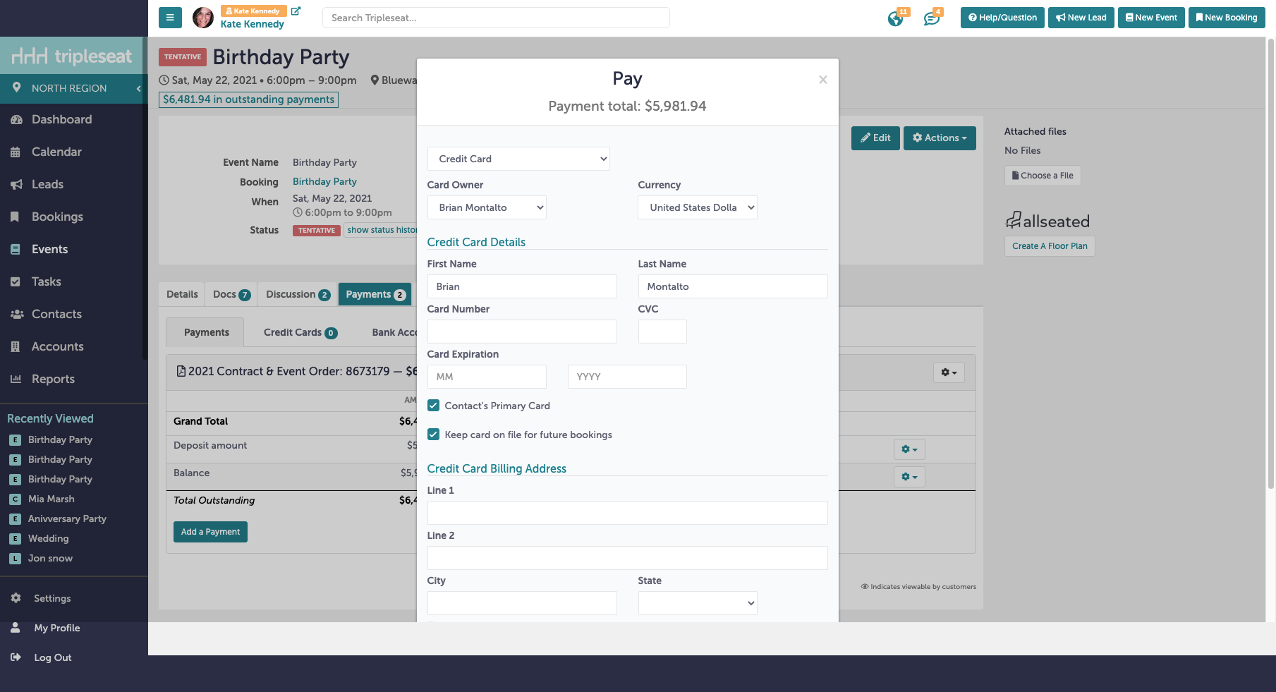 Integrate with Tripleseat PartyPay, the easiest way to accept credit card and ACH payments for events and catering.