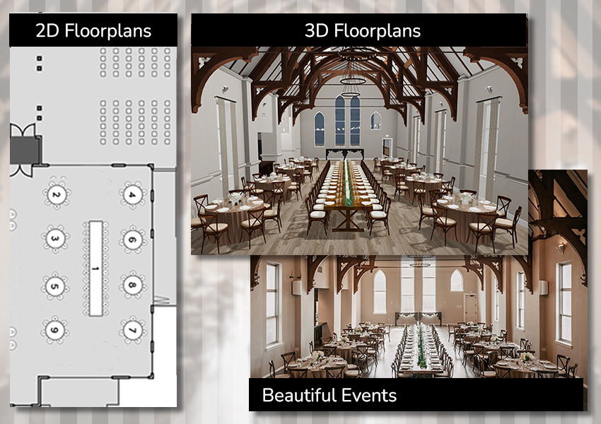 Transform your venue for any event with Floorplans by Tripleseat. In minutes, create dynamic 2D and immersive 3D layouts that are not just visually stunning, but also precise and accurate, allowing you to sell smarter, plan faster, and execute flawlessly.