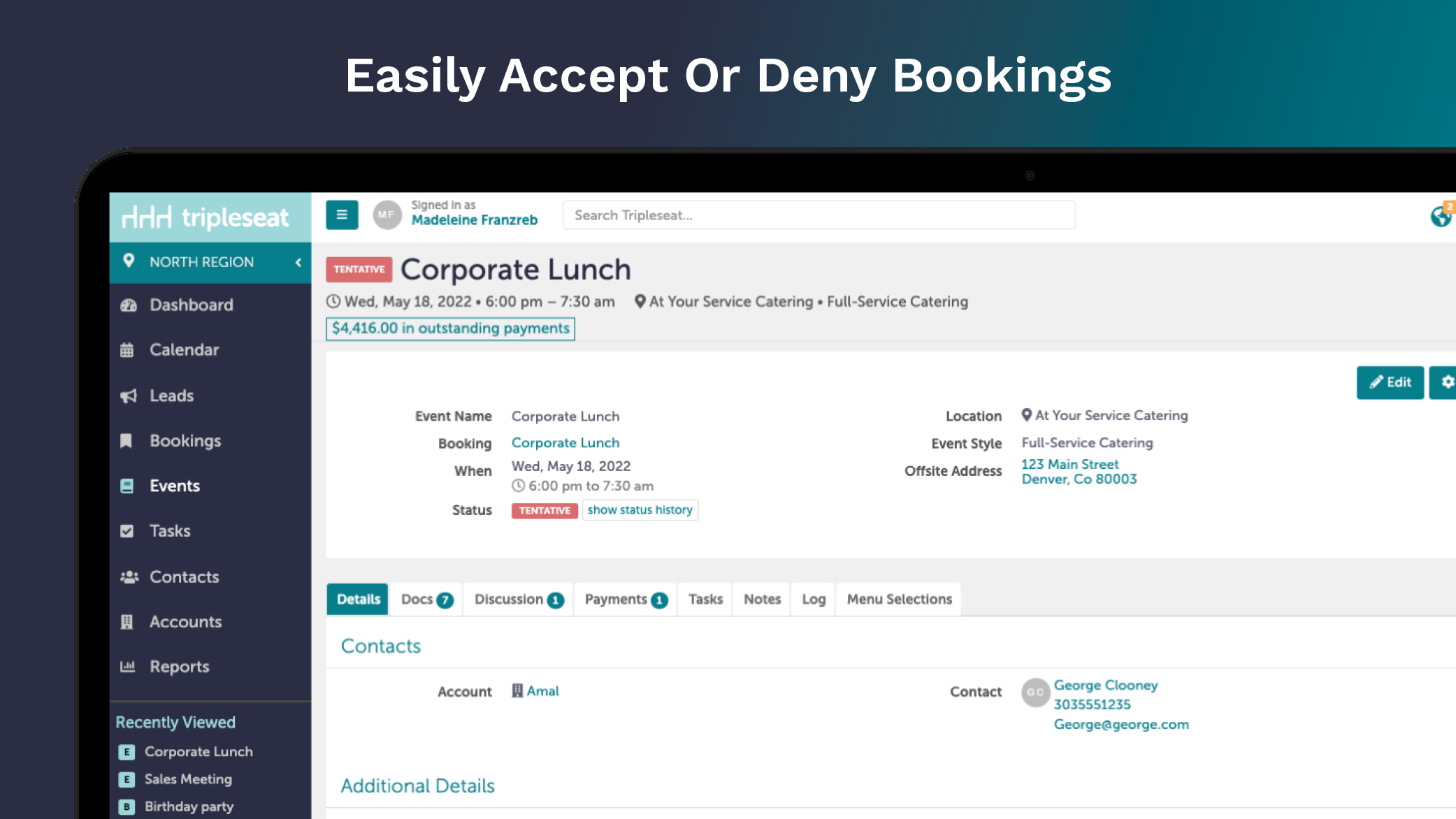 Tripleseat+ Direct is an add-on that enables customers to book on- and off-premise events and catering with your business, anywhere, anytime.